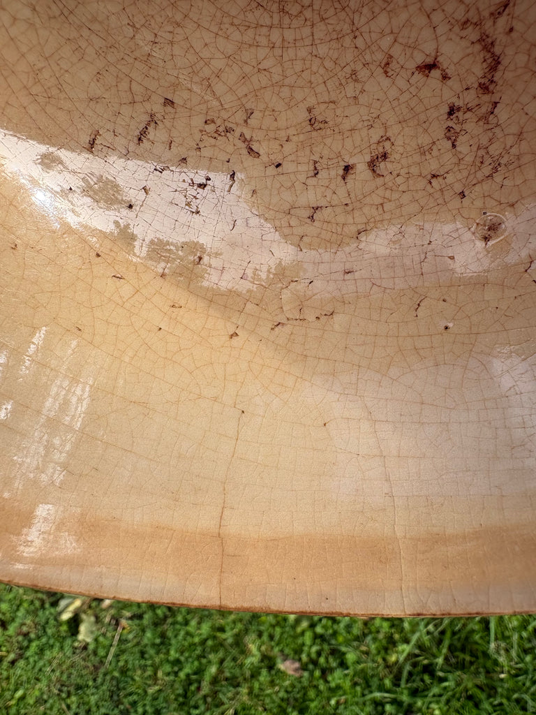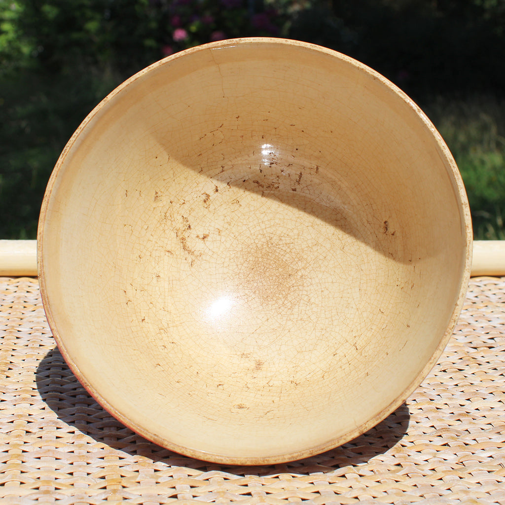 L'émail intérieur du bol est patiné et il y a des impacts de cuillère.