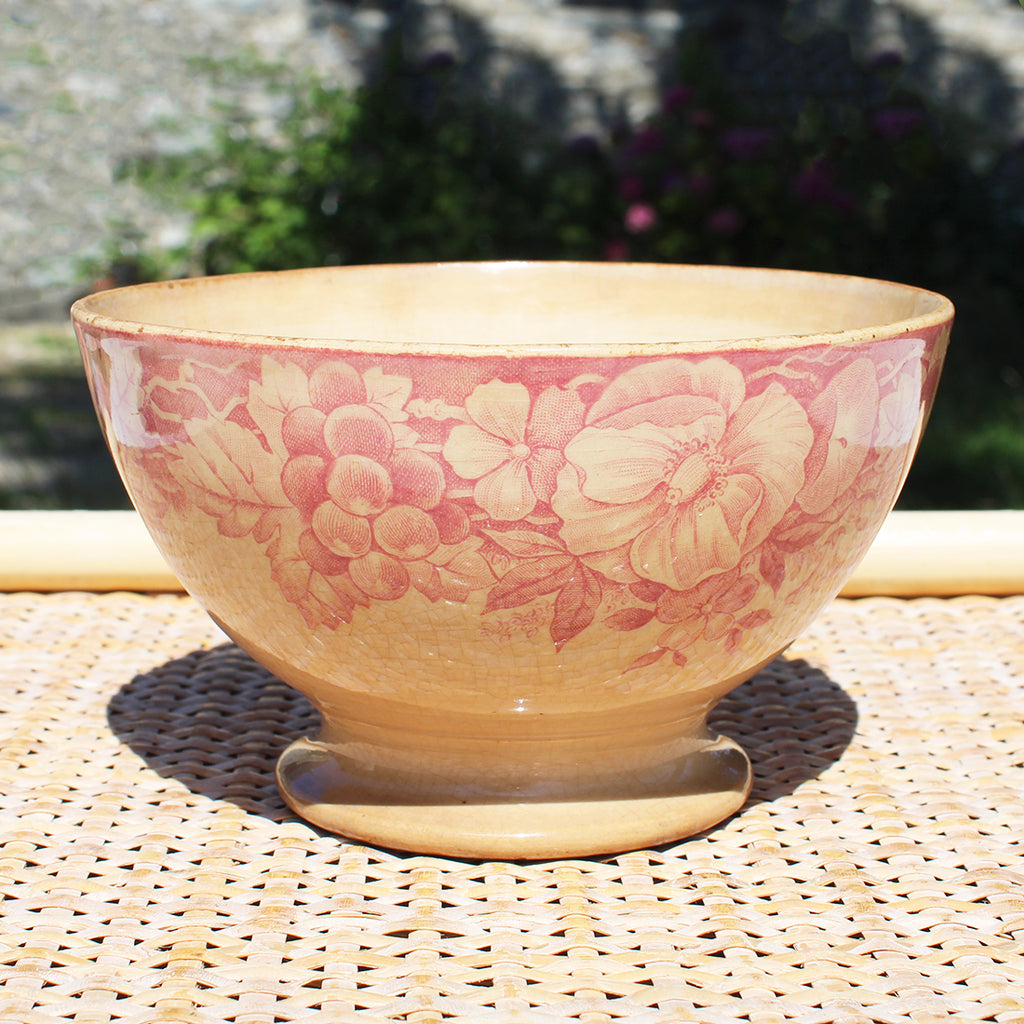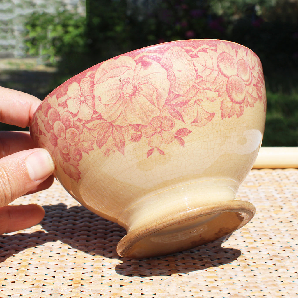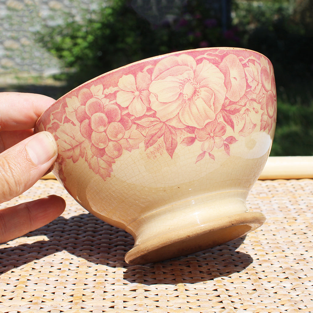 Ancien bol en faïence patinée de Creil et Montereau 619 / vigne / raisin / liseron