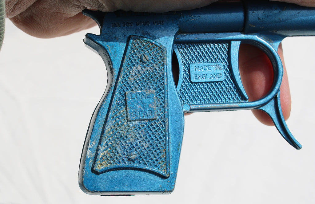 Ancien jouet pistolet à pommes de terre Lone Star / Spud Gun / en métal.