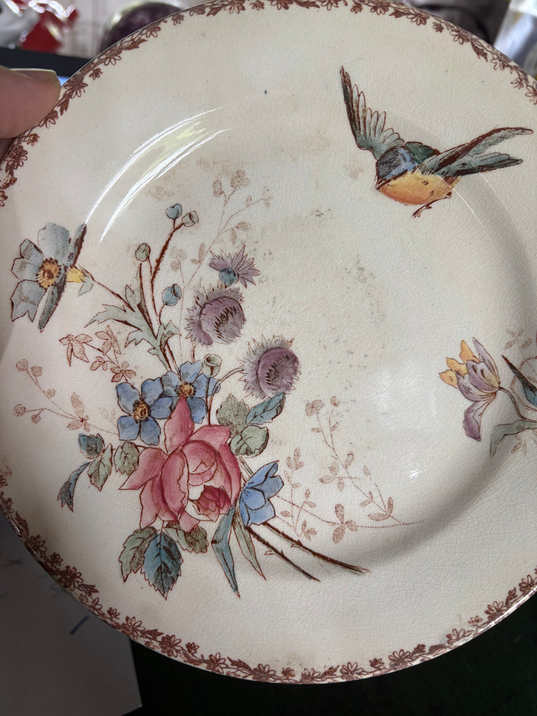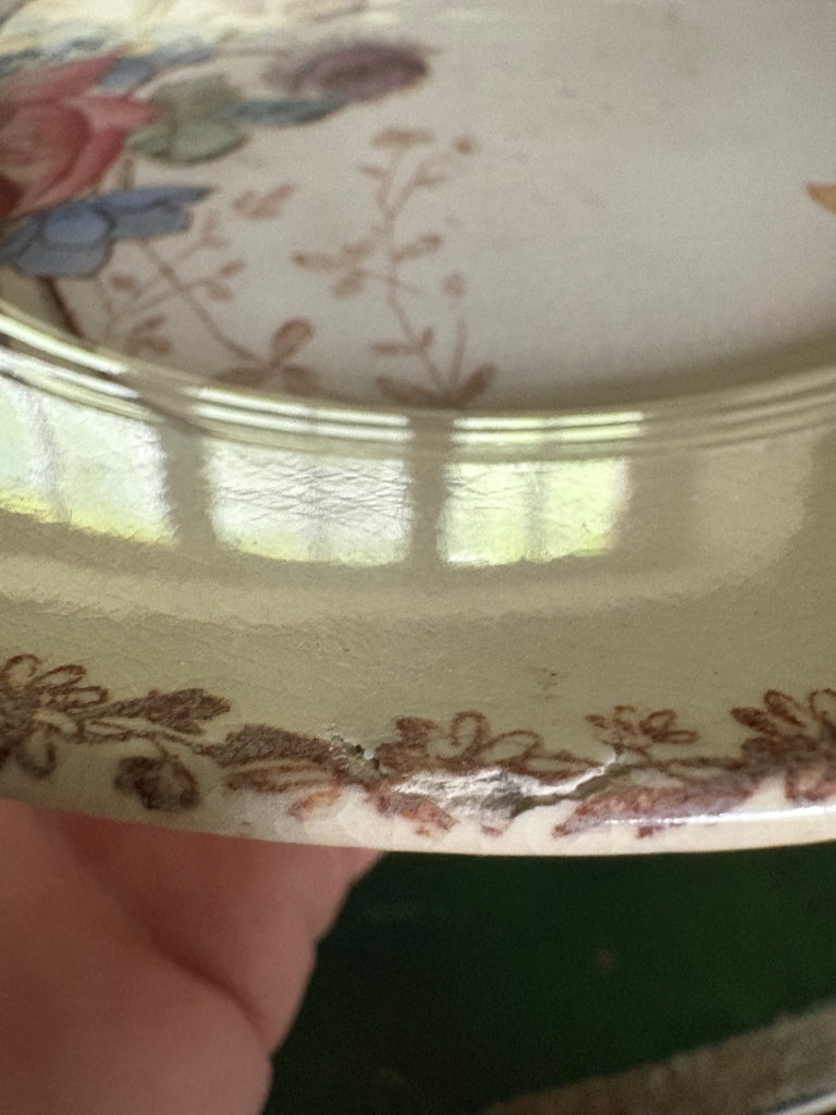 Cette assiette a un vécu de plus de 120 ans et elle n'est en aucun cas dans un état neuf. Il faut donc prendre en compte que malgré une sélection et une description rigoureuses afin de présenter un ensemble de qualité, elle peut comporter de minimes défauts causés par le temps qui passe en plus de ceux indiqués dans la description. Pour avoir un état irréprochable, je vous invite plutôt à vous tourner vers de la vaisselle neuve ou plus moderne.