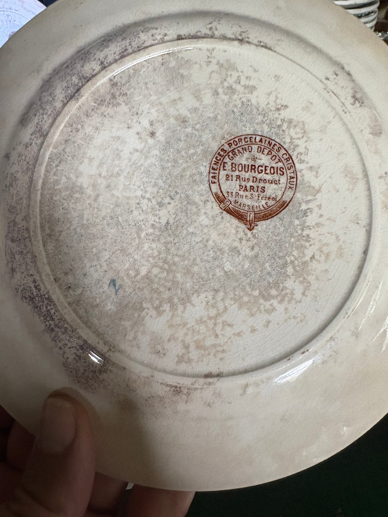 L'estampille présente est celle du distributeur de faïence du Grand Dépôt Émile Bourgeois.