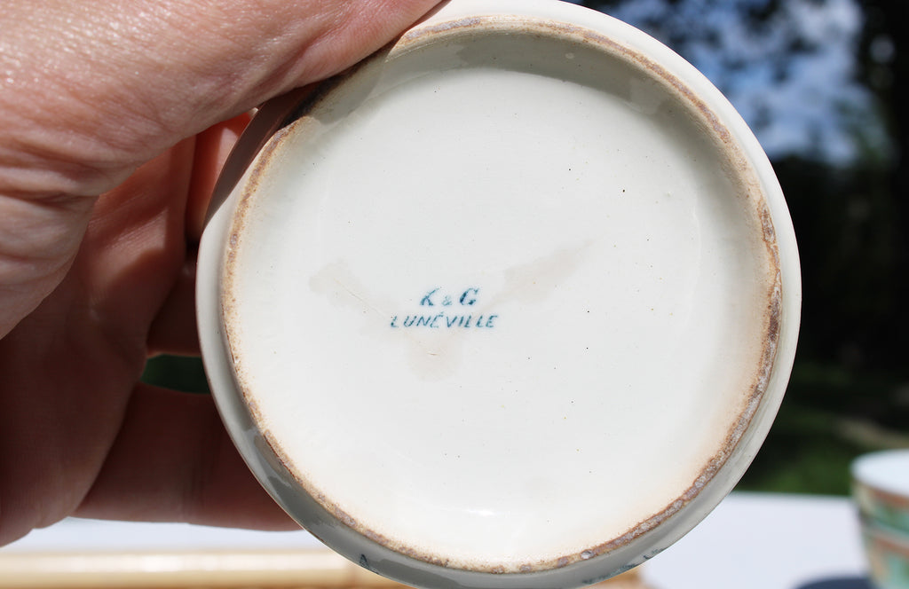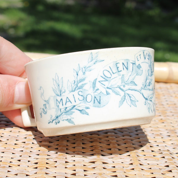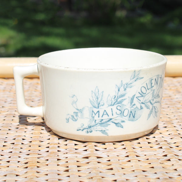 Ancienne tasse publicitaire Maison Nolent et Vve Louchard à Charleville / faïence de KG Lunéville.