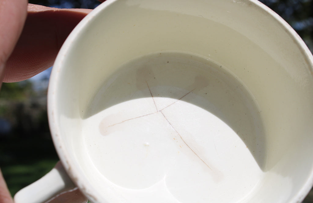 Cette tasse a un vécu de plus de 100 ans et elle n'est en aucun cas dans un état neuf. Il faut donc prendre en compte que malgré une sélection et une description rigoureuses afin de présenter un ensemble de qualité, elle peut comporter de minimes défauts causés par le temps qui passe. Pour avoir un état irréprochable, je vous invite plutôt à vous tourner vers de la vaisselle neuve ou plus moderne.
