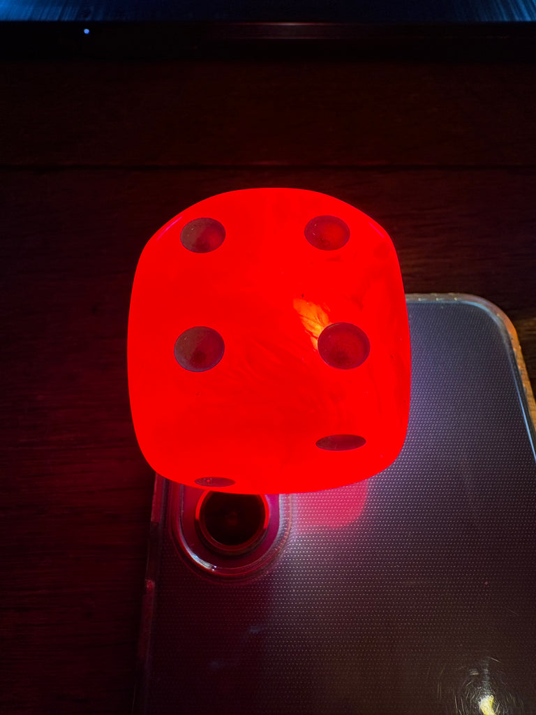 Gros dé à jouer ancien / vintage / 3.8 cm en bakélite coloris rouge ambre.