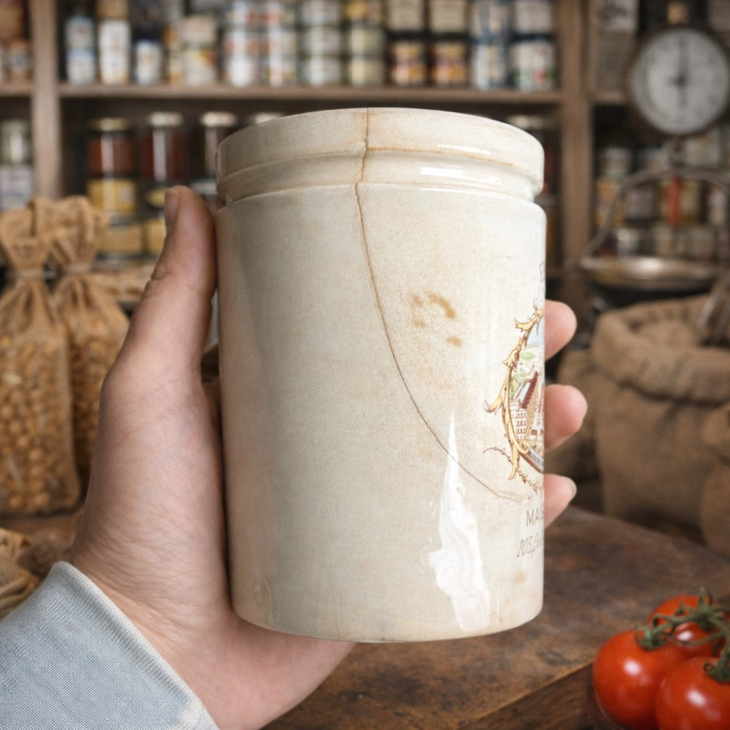 Pot ancien Félix Potin – Pot à confiture en faïence polychrome – Paris