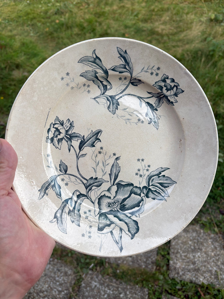 Ce plat a un vécu de plus de 100 ans et il n'est en aucun cas dans un état neuf. Il faut donc prendre en compte que malgré une sélection et une description rigoureuses afin de présenter un ensemble de qualité, il peut comporter de minimes défauts causés par le temps qui passe. Pour avoir un état irréprochable, je vous invite plutôt à vous tourner vers de la vaisselle neuve ou plus moderne.