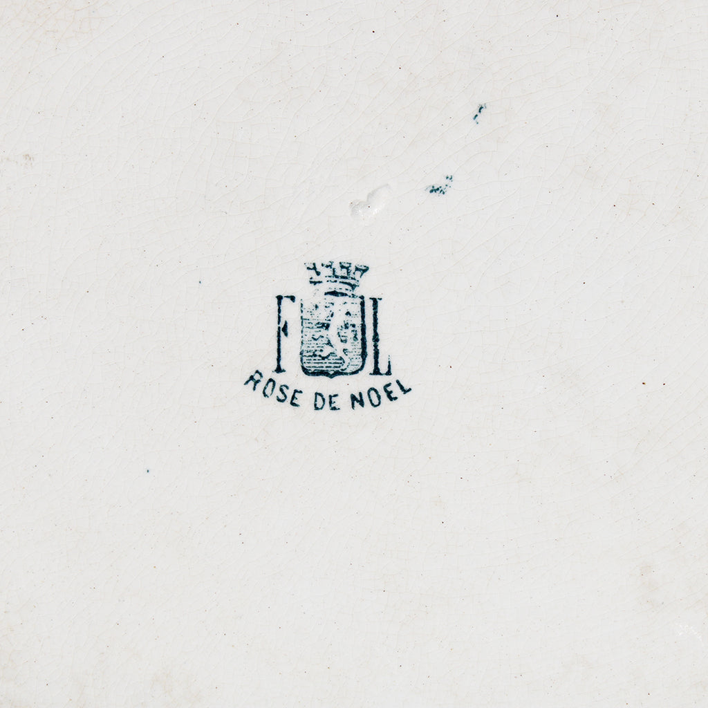Ancien plat rond 28.3 cm en faïence de Lyon FL modèle Rose de Noël.