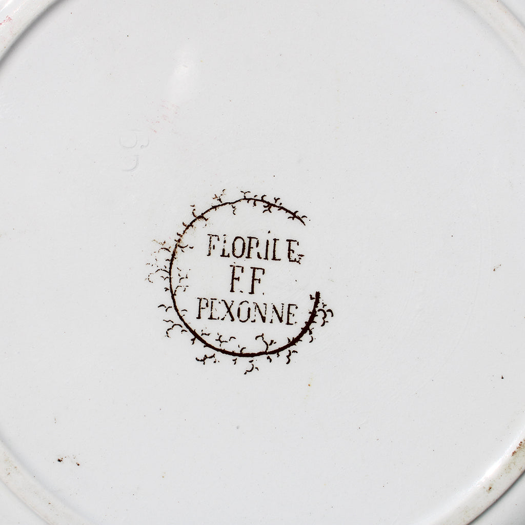 Ancienne assiette à dessert en faïence polychrome de Pexonne modèle Floride.