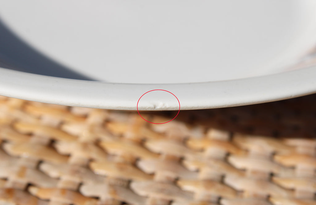 Il y a une micro égrenure sur le rebord de l'assiette, elle reste toutefois très discrète.