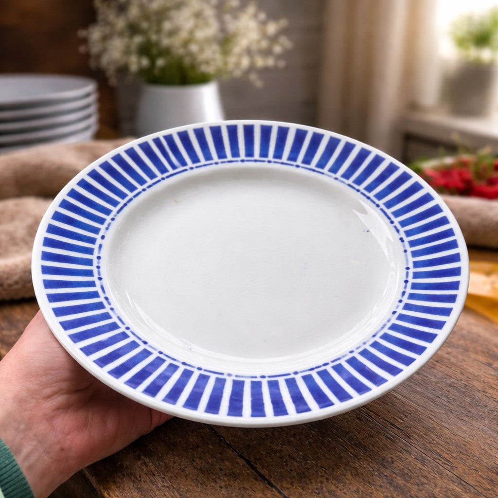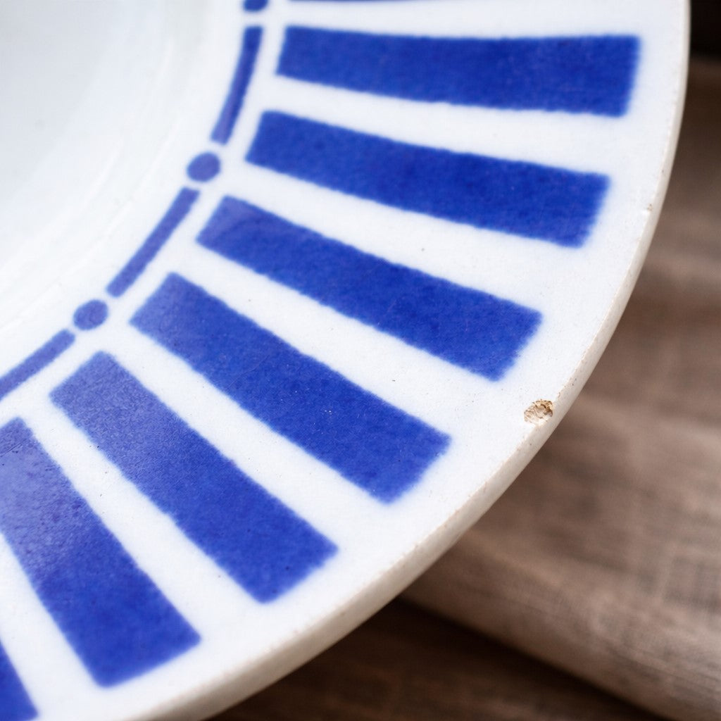 Décor radial bleu profond, typique des productions françaises du XXᵉ siècle.