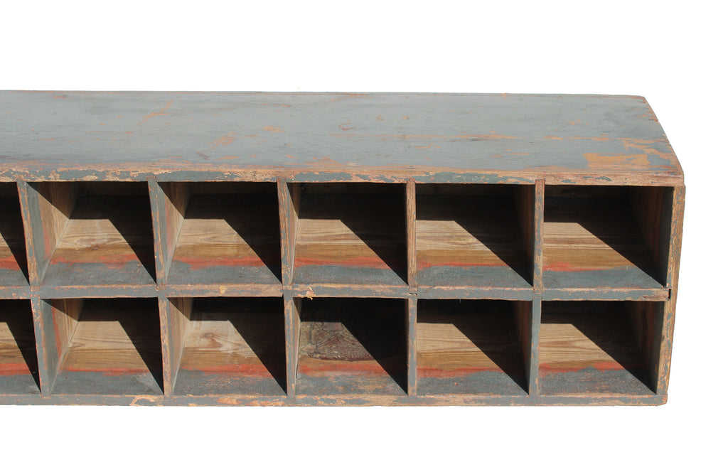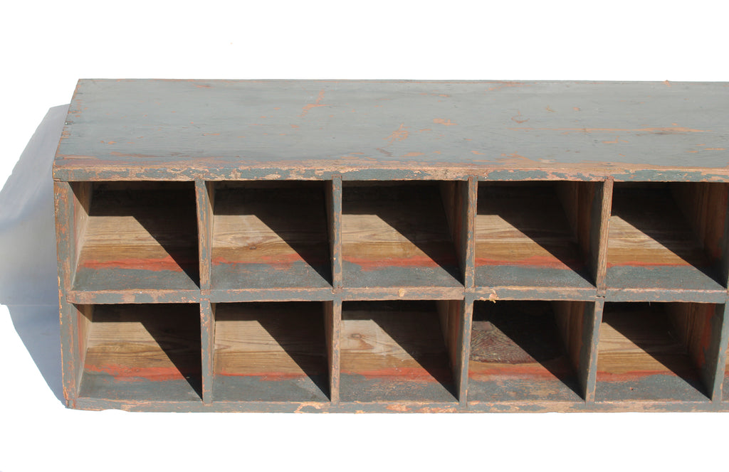 Ancien petit meuble d'atelier en bois 77 cm / de métier à poser / 12 casiers.