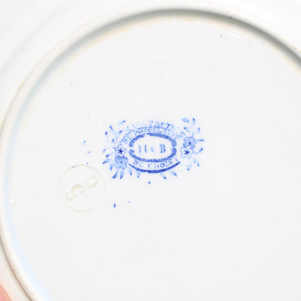 Assiette à dessert ancienne en faïence – décor floral bleu – HB & Cie – Choisy-le-Roi – XIXe