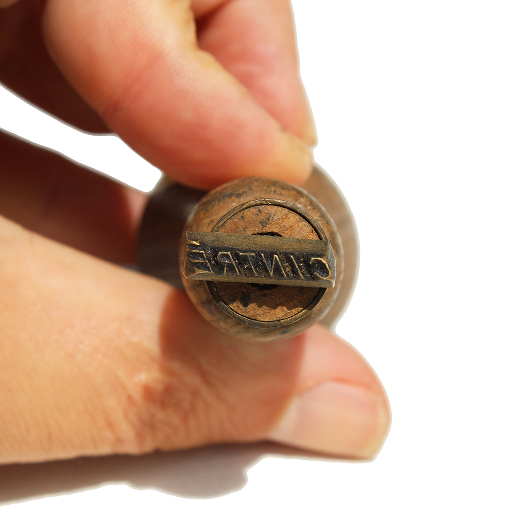 Dimensions du tampon en bronze : environ 17 mm x 6 mm.