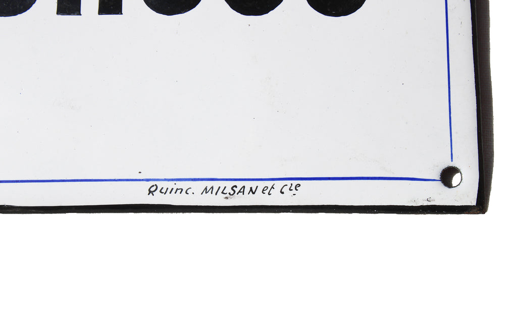 Ancienne plaque émaillée d'usine, fabriquée par la Quincaillerie Industrielle G. Milsan située au 28 rue Grand-Pont à Rouen.