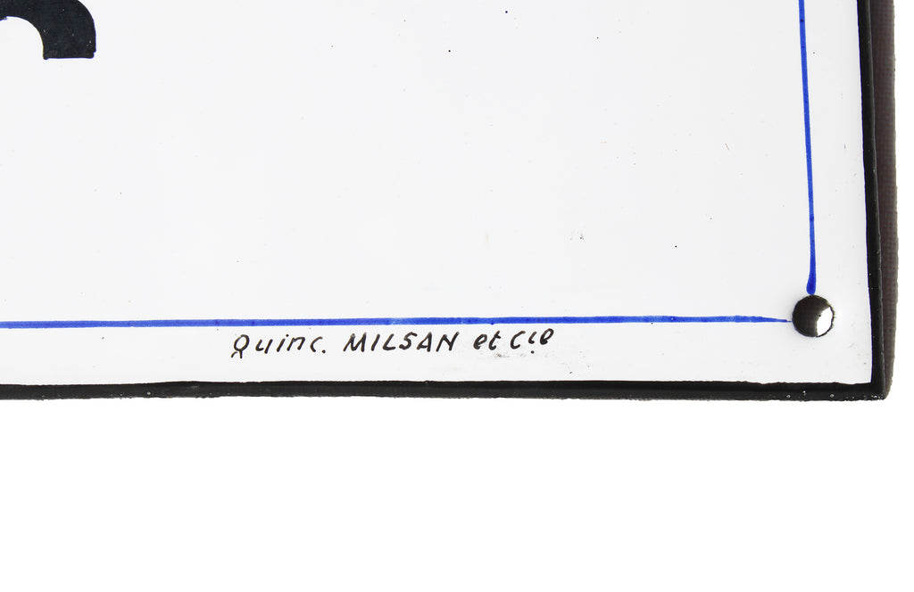 Ancienne plaque émaillée d'usine, fabriquée par la Quincaillerie Industrielle G. Milsan située au 28 rue Grand-Pont à Rouen.