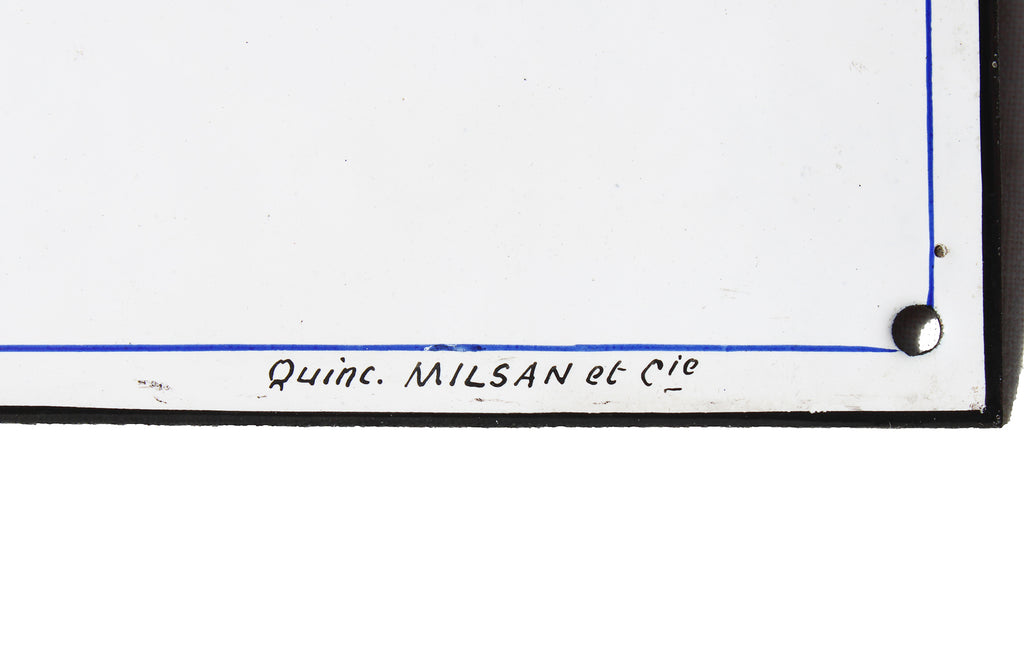 Ancienne plaque émaillée d'usine, fabriquée par la Quincaillerie Industrielle G. Milsan située au 28 rue Grand-Pont à Rouen.