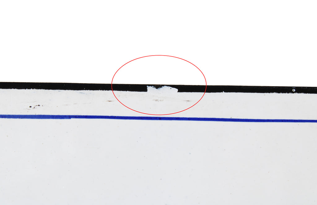 Il y a un petit éclat d'environ 12 mm sur le haut de la plaque, voir la photo.
