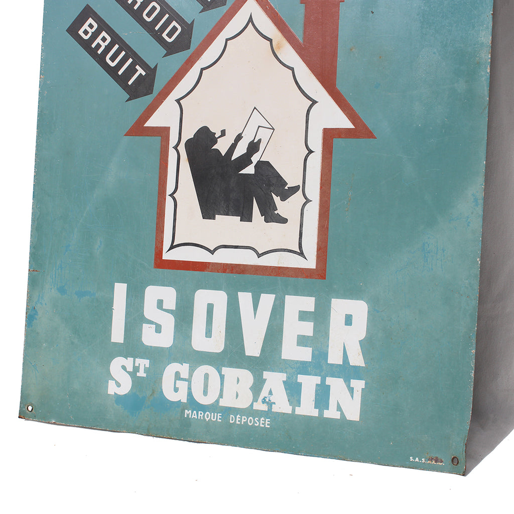 Ancienne plaque publicitaire 40 cm x 45 cm / tôle non émaillée / Isover St Gobain