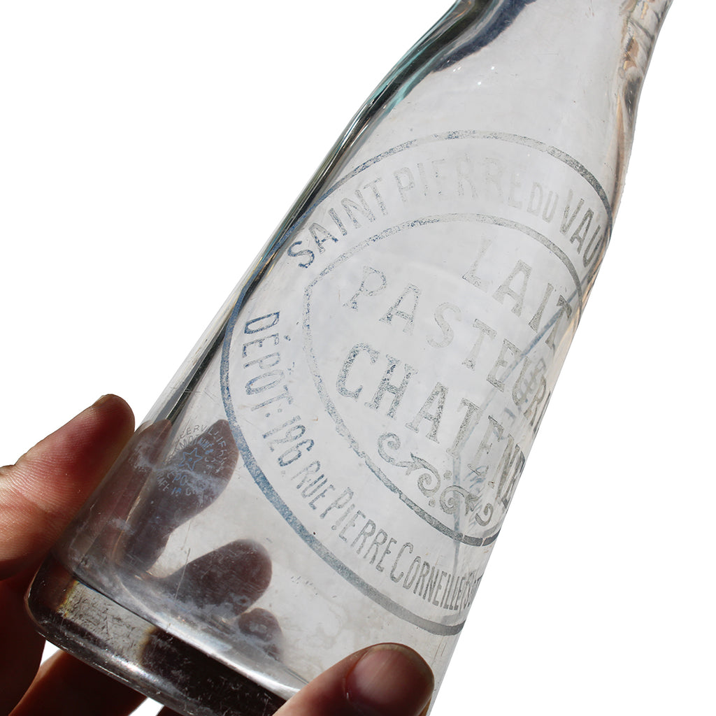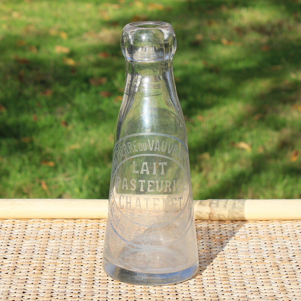 Ancienne bouteille de lait vide en verre / Laiterie Chatenet à Saint Pierre du Vauvray ( Eure ).