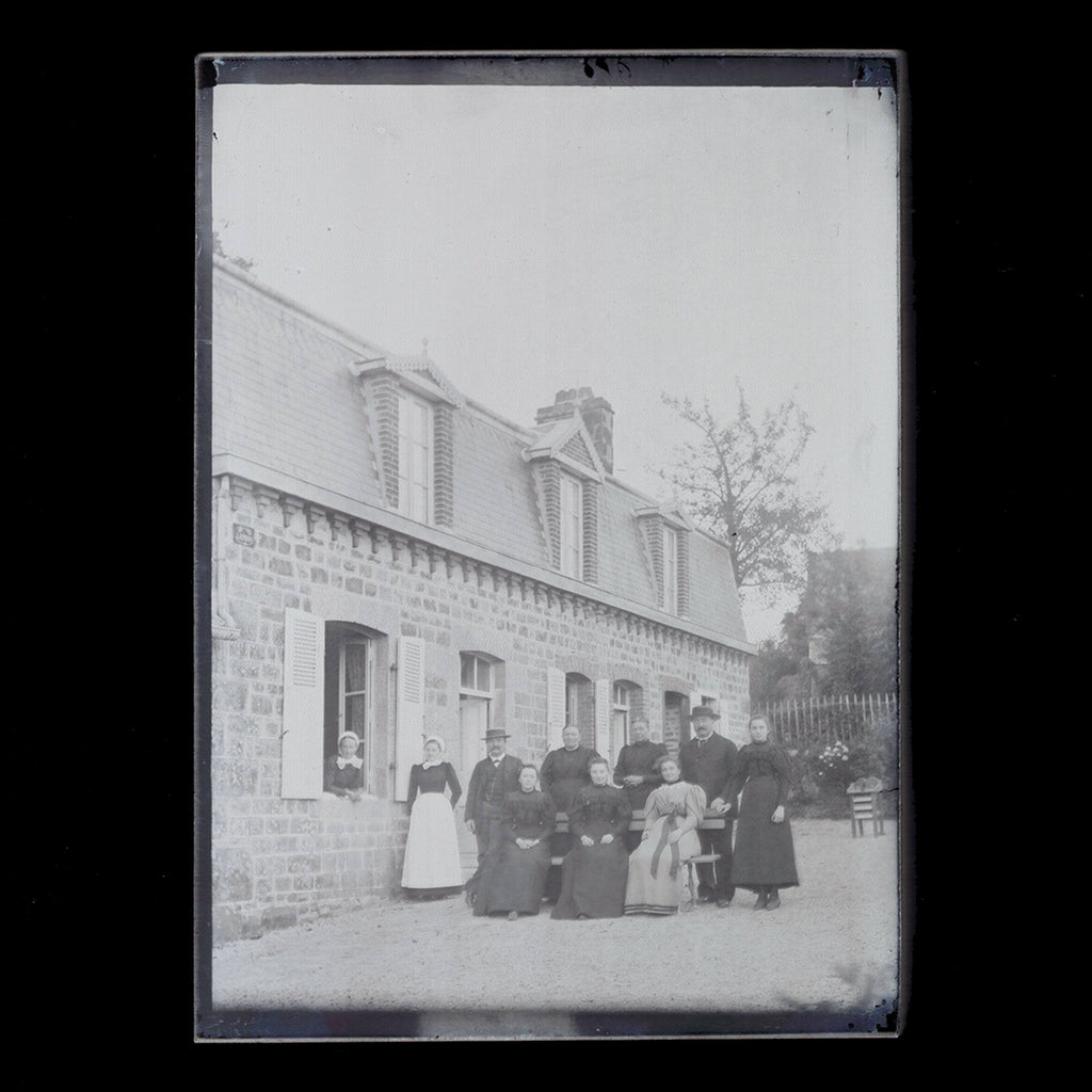 Négatif 18 x 13 / Ancienne photo plaque de verre / Famille bourgeoise devant sa maison.