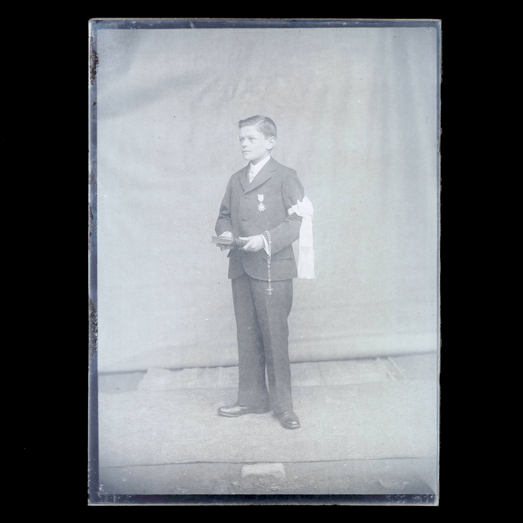 Négatif 18 x 13 / Ancienne photo plaque de verre / Religion - Communiant