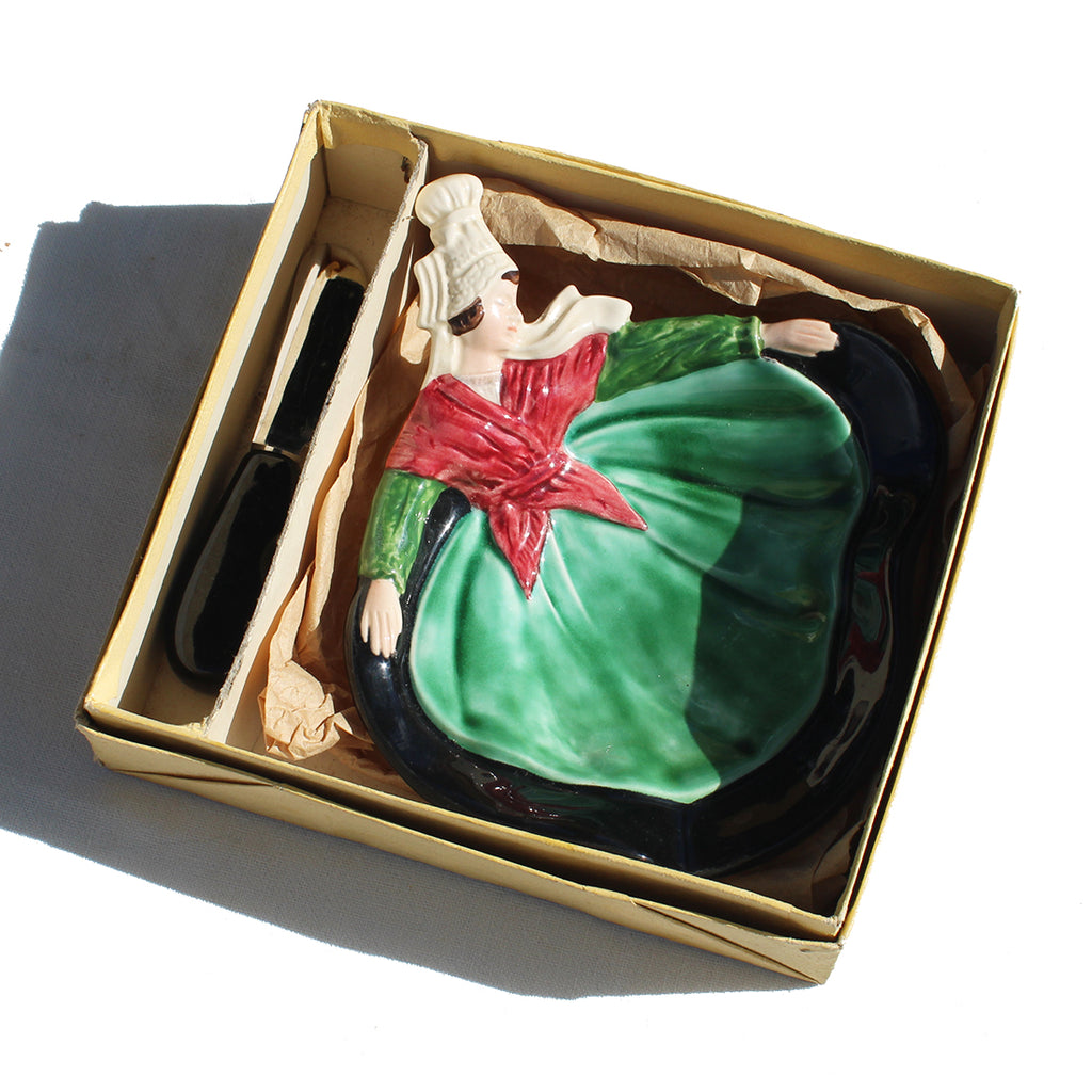 Ancien beurrier + couteau / faïence de Desvres / Gabriel Formaintreaux