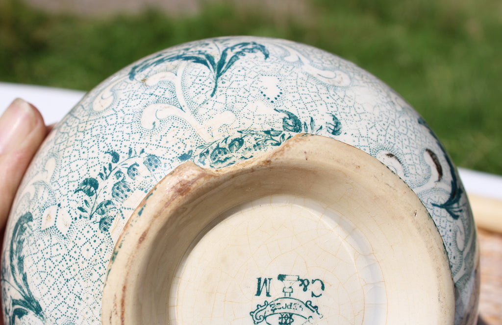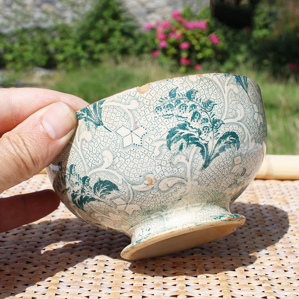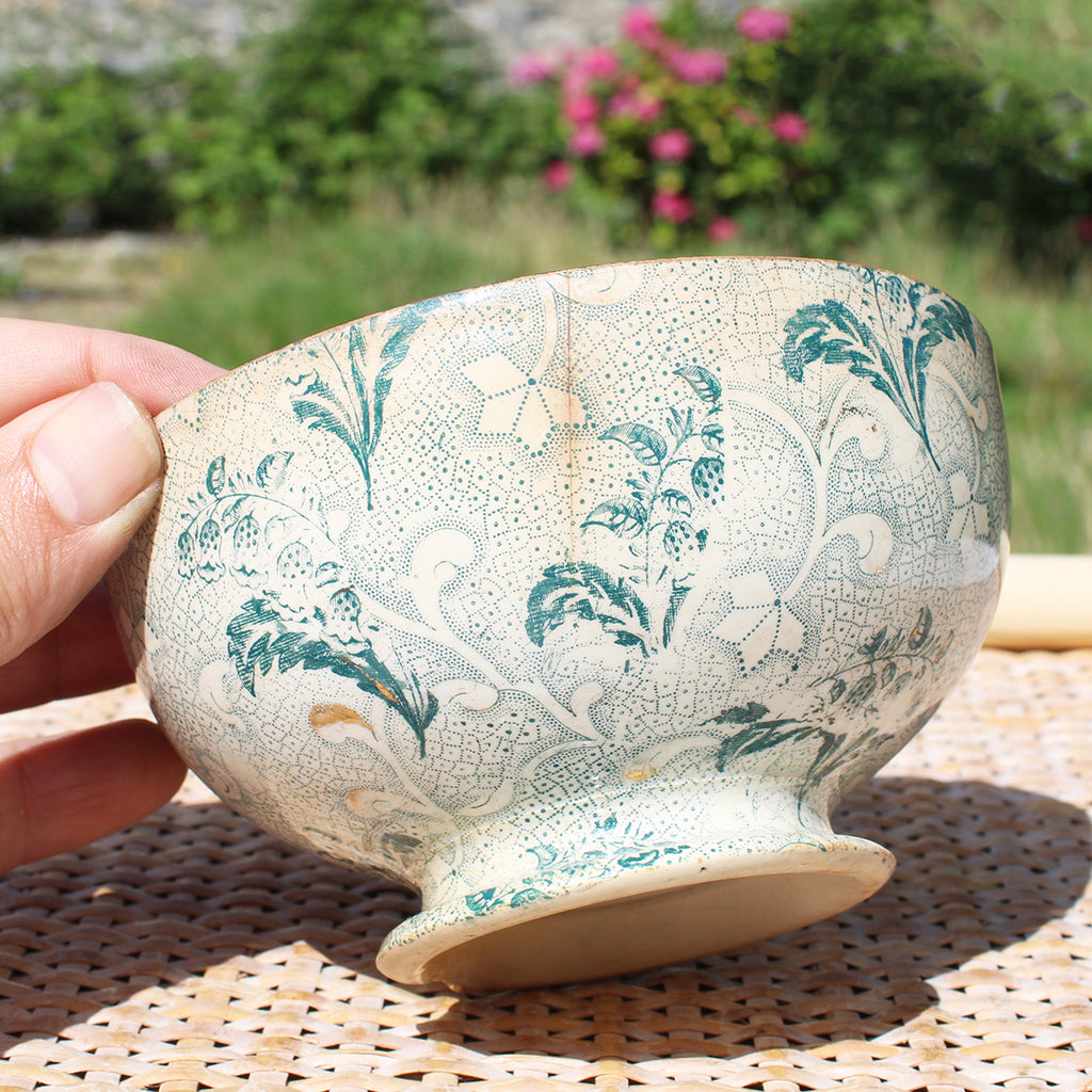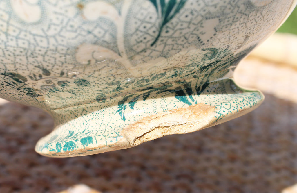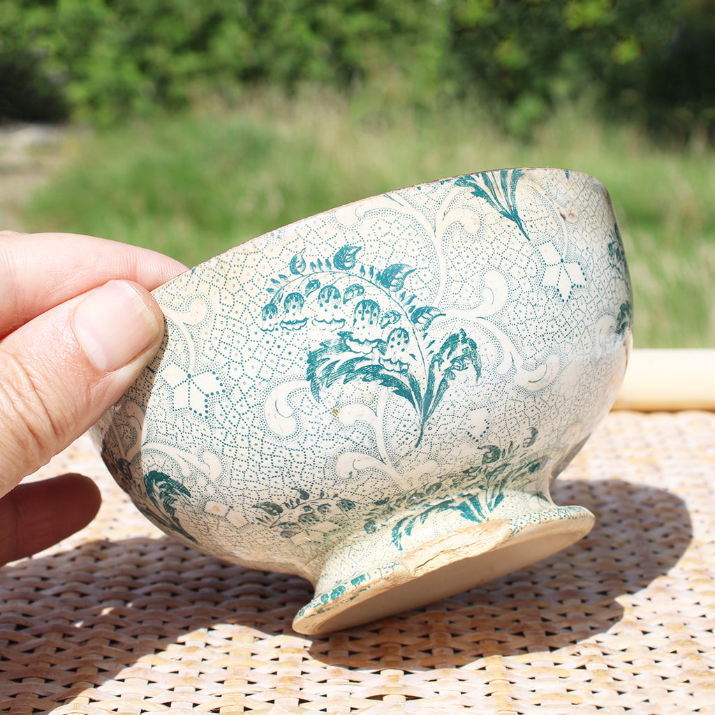 Ce bol a un vécu de plus de 100 ans et il n'est en aucun cas dans un état neuf. Il faut donc prendre en compte que malgré une sélection et une description rigoureuses afin de présenter un ensemble de qualité, il peut comporter de minimes défauts causés par le temps qui passe. Pour avoir un état irréprochable, je vous invite plutôt à vous tourner vers de la vaisselle neuve ou plus moderne.