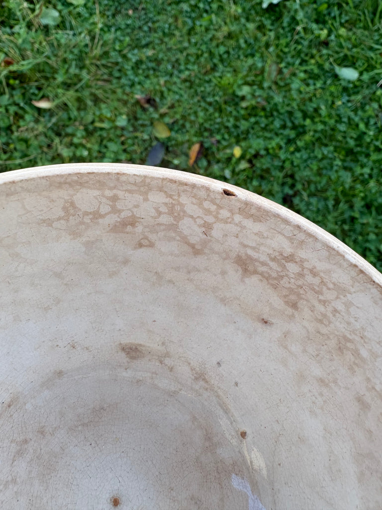 Ce bol a un vécu de plus de 120 ans et il n'est en aucun cas dans un état neuf. Il faut donc prendre en compte que malgré une sélection et une description rigoureuses afin de présenter un ensemble de qualité, il peut comporter de minimes défauts causés par le temps qui passe. Pour avoir un état irréprochable, je vous invite plutôt à vous tourner vers de la vaisselle neuve ou plus moderne.