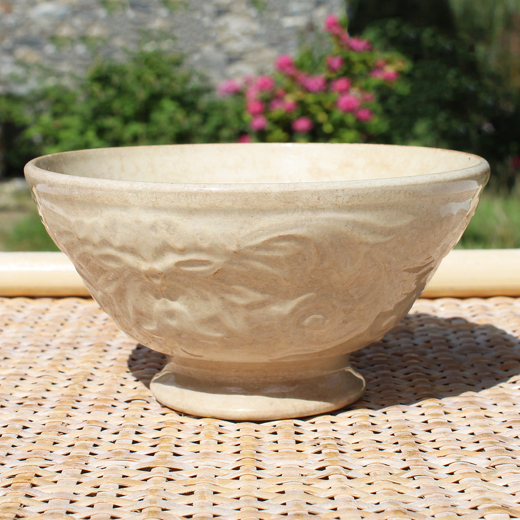 Ancien bol en faïence patinée / Fleur de lys / en barbotine d'Onnaing ?.