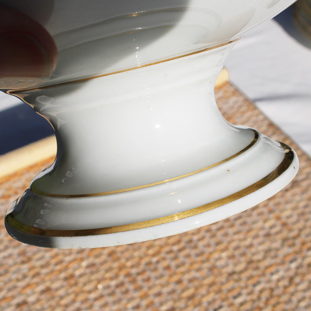 Ce compotier a un vécu de plus de 180 ans et il n'est en aucun cas dans un état neuf. Il faut donc prendre en compte que malgré une sélection et une description rigoureuses afin de présenter un ensemble de qualité, il peut comporter de minimes défauts causés par le temps qui passe en plus de ceux indiqués dans la description. Pour avoir un état irréprochable, je vous invite plutôt à vous tourner vers de la vaisselle neuve ou plus moderne.