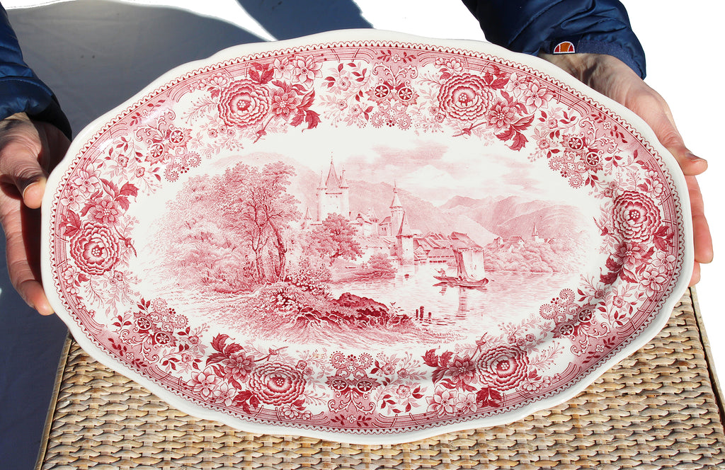 Ancien plat de service ovale 40 cm en faïence de Villeroy & Boch modèle Burgenland rouge