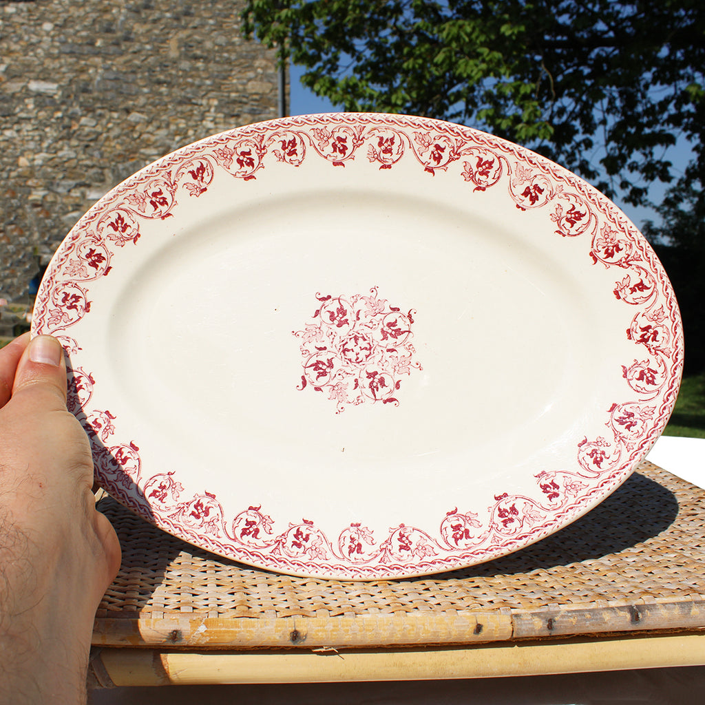 Ancien plat ovale 33 cm en faïence de HB & Cie / Choisy le Roi modèle Brienne.