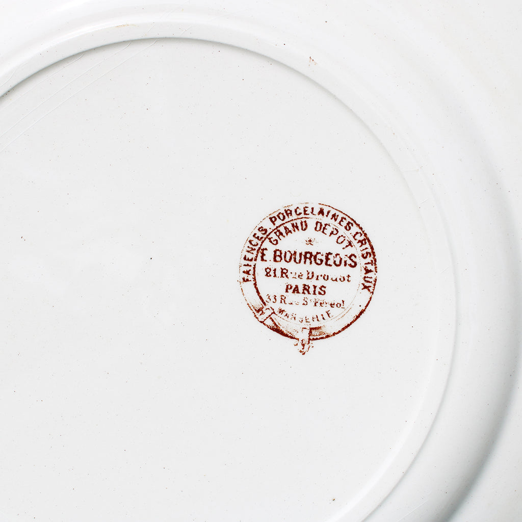 L'estampille présente est celle du distributeur de faïence du Grand Dépôt Émile Bourgeois.