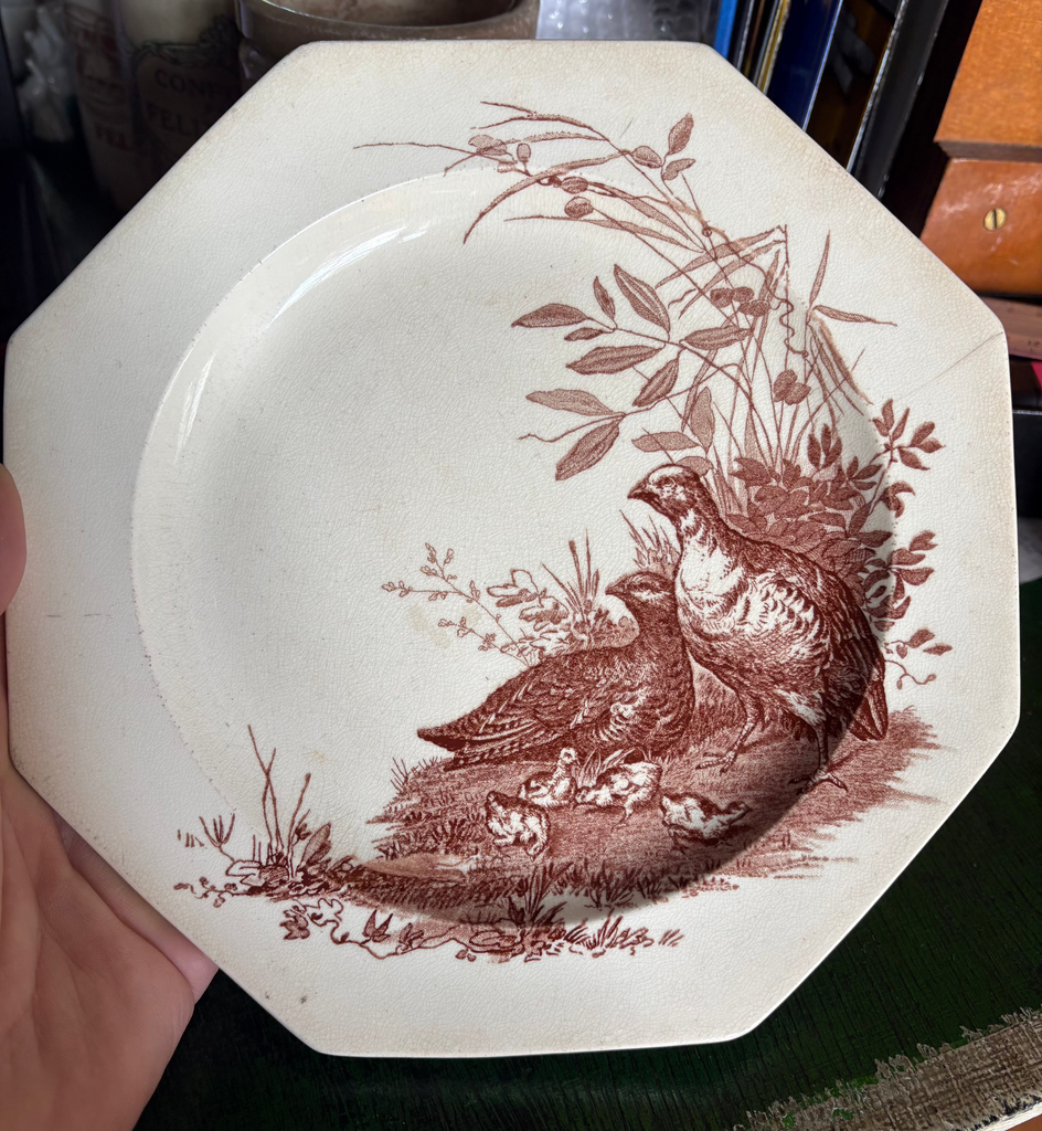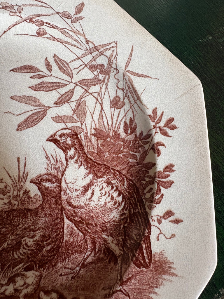 Ancienne assiette en faïence anglaise Wedgwood / modèle Rustic / Perdrix.