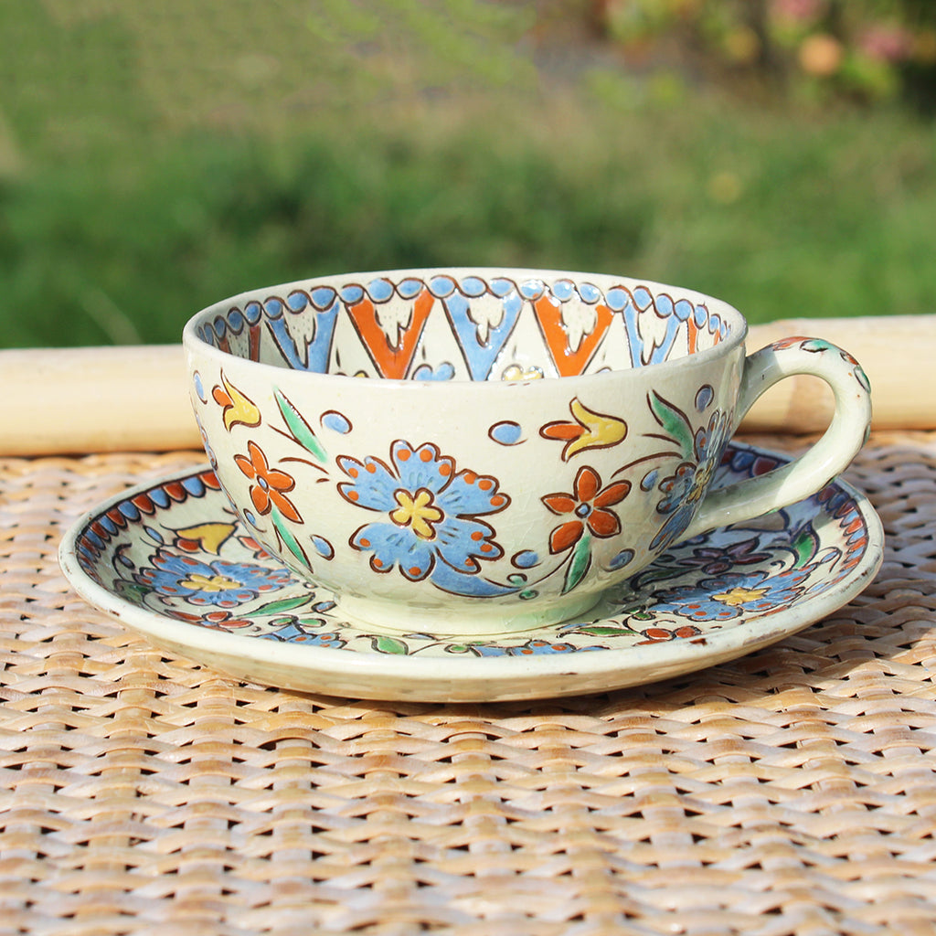 Ancienne tasse à café / thé + soucoupe / Émaux de Thoune ( Suisse )