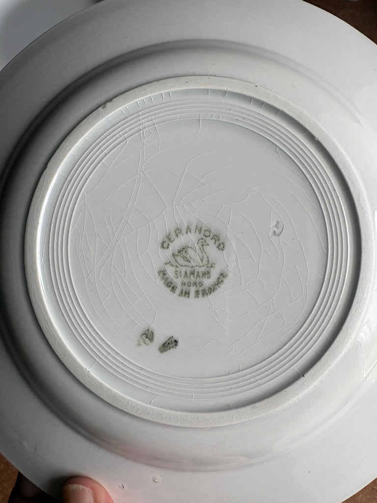 Belle assiette creuse ancienne en faïence issue de la manufacture CERANORD St Amand, portant son tampon d’origine au revers.
