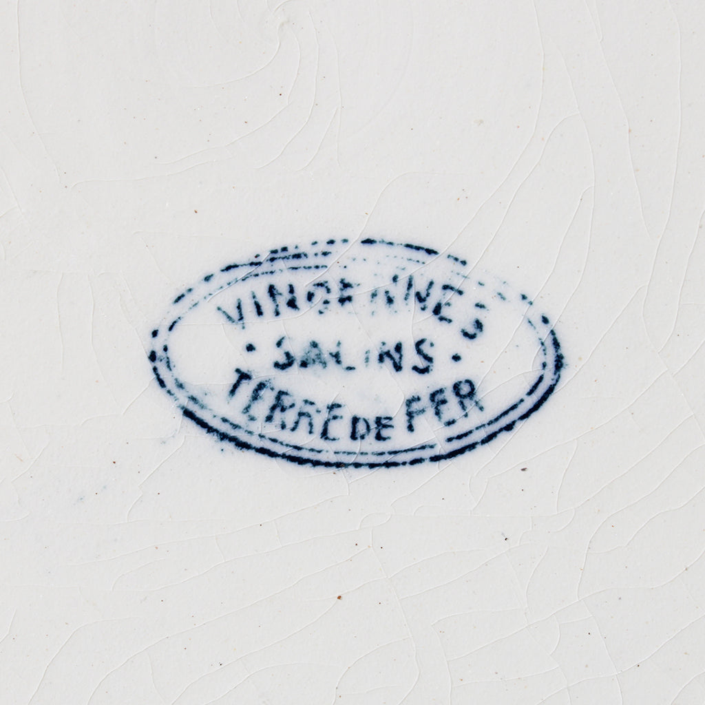 Ensemble de 5 assiettes plates anciennes en faïence de Salins modèle Vincennes.