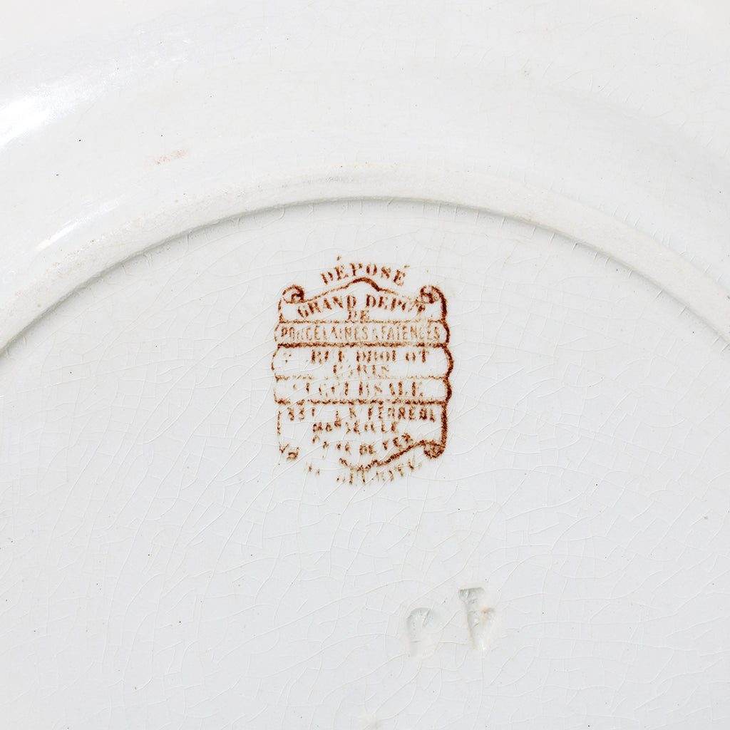 L'estampille présente est celle du distributeur de faïence du Grand Dépôt Émile Bourgeois.