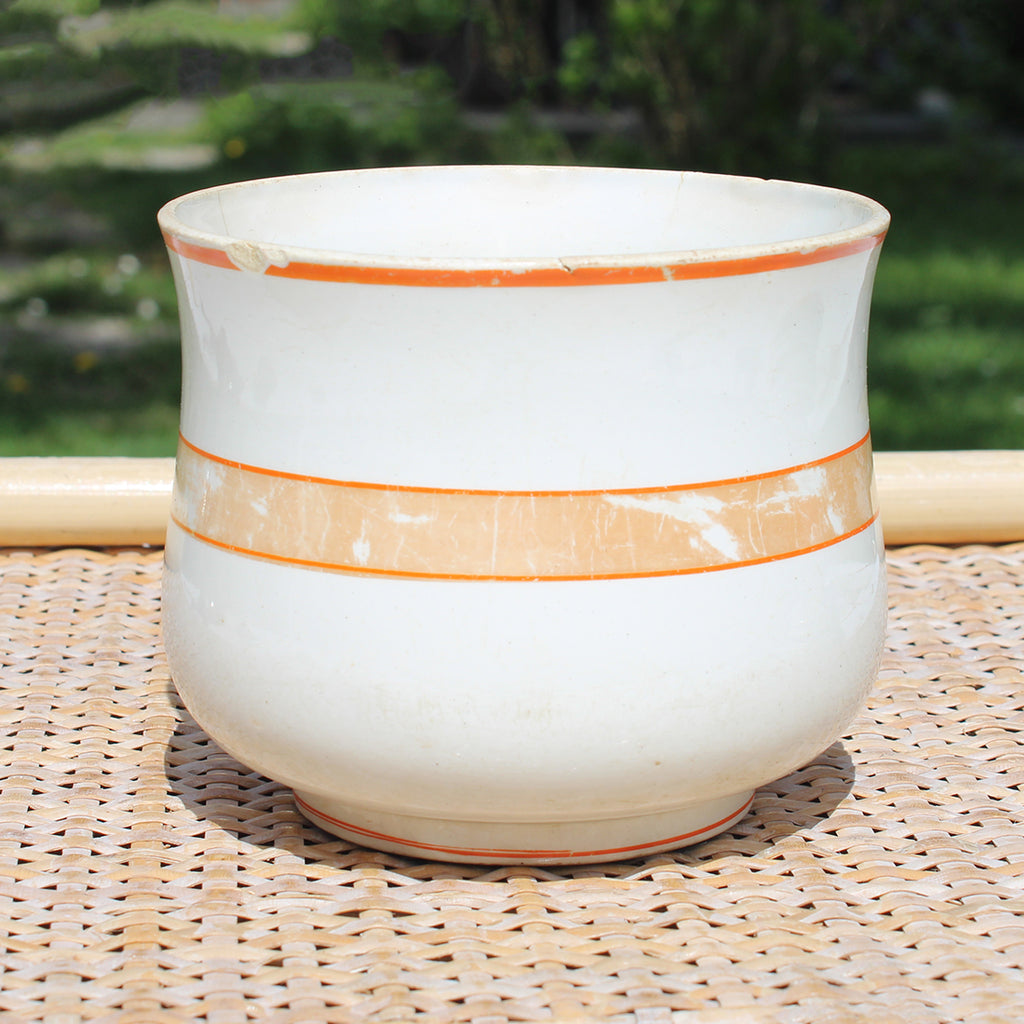 Grande tasse à chocolat ancienne en faïence de Creil et Montereau LM & Cie / décor rayé.