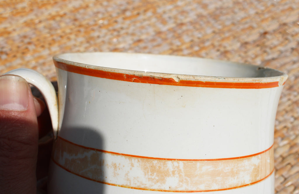Grande tasse à chocolat ancienne en faïence de Creil et Montereau LM & Cie / décor rayé