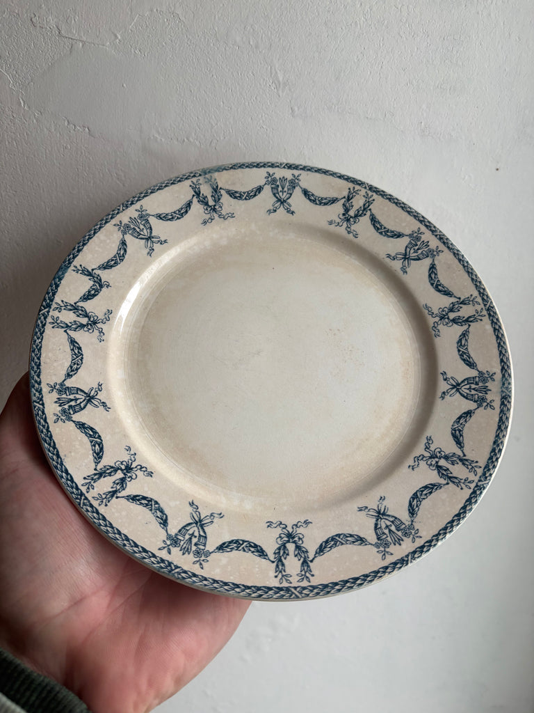 • Motif : décor bleu à guirlandes stylisées