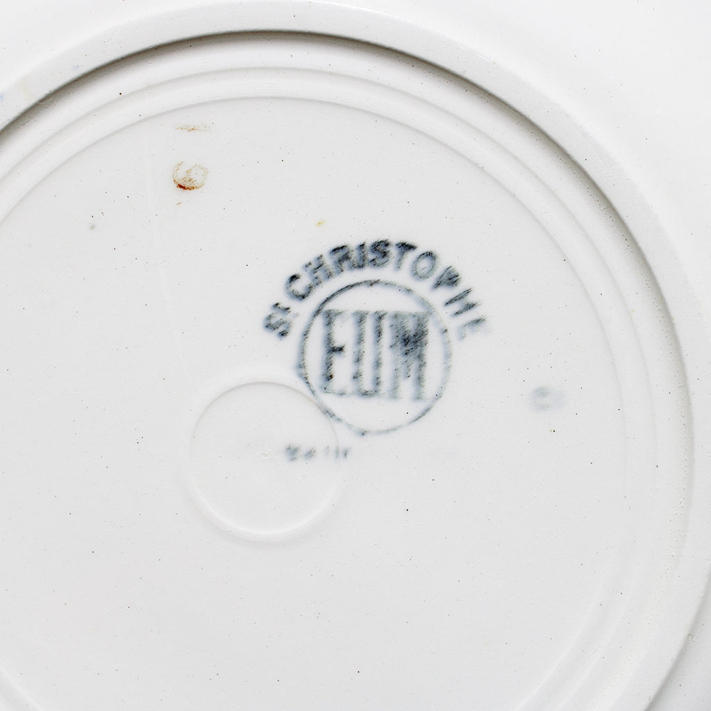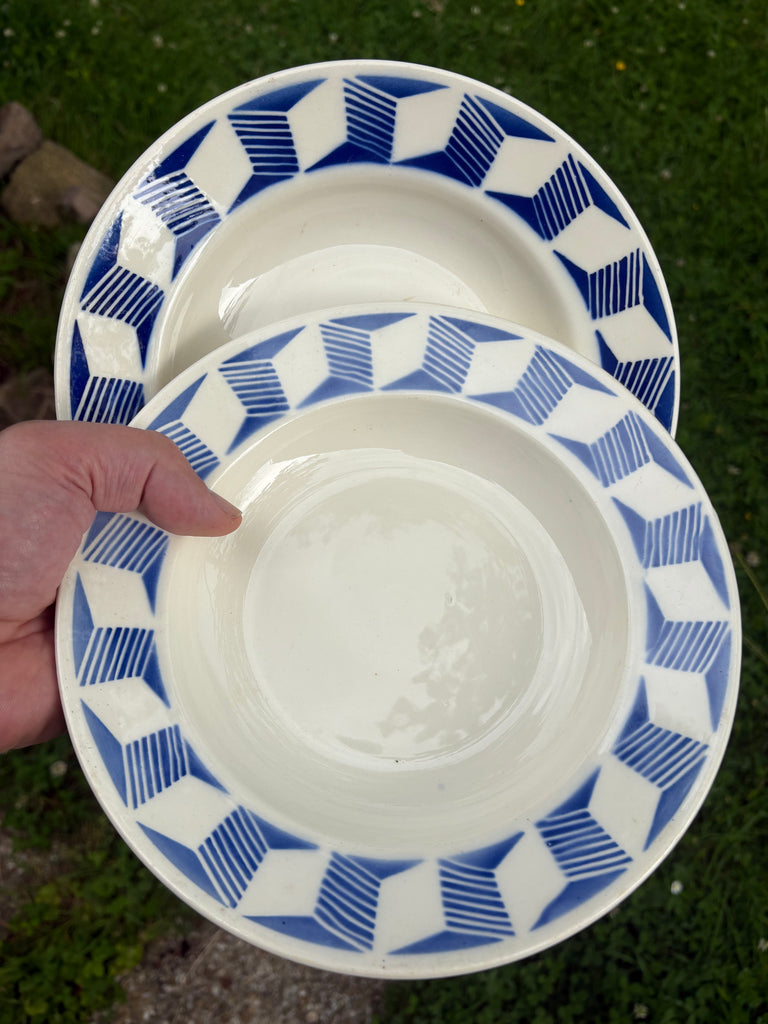 Paire d'assiettes creuses anciennes 22.5 cm en faïence de Badonviller modèle St Christophe