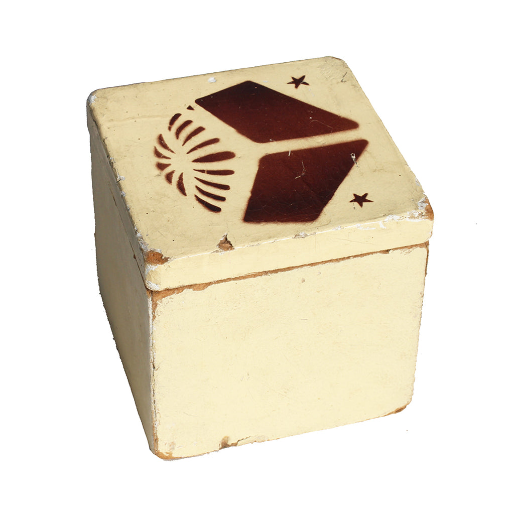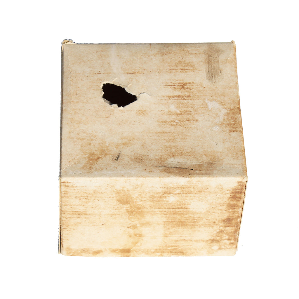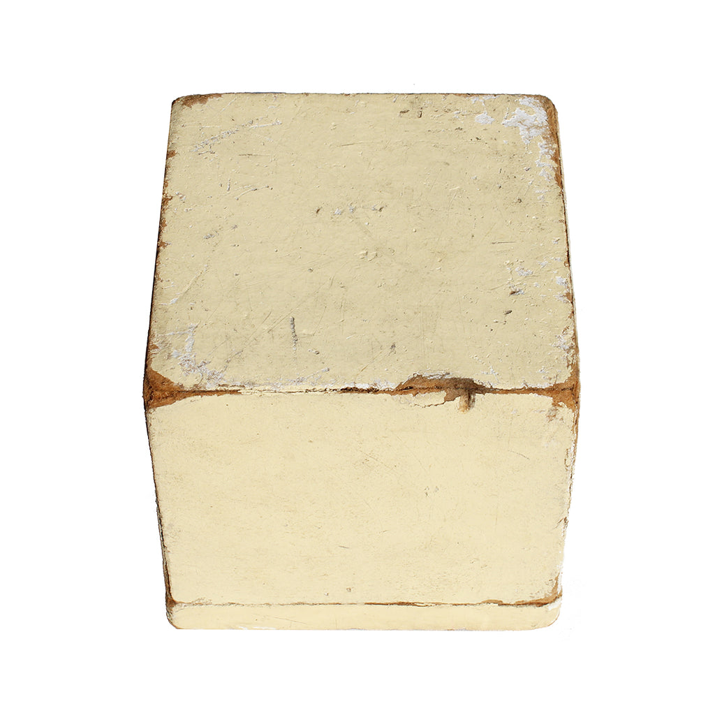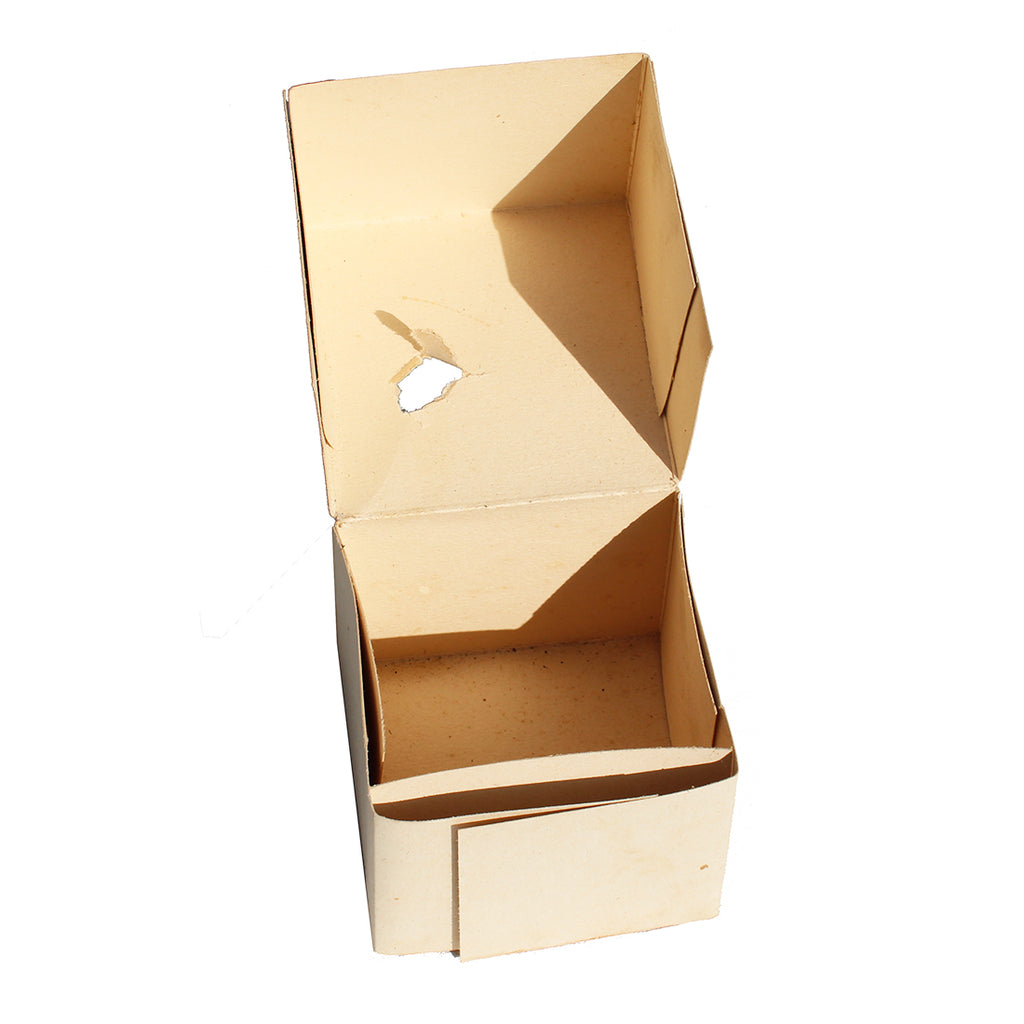 La matière de la boîte est une sorte de carton aggloméré fortement compressé, recouvert d'une couche de plâtre puis peinte.