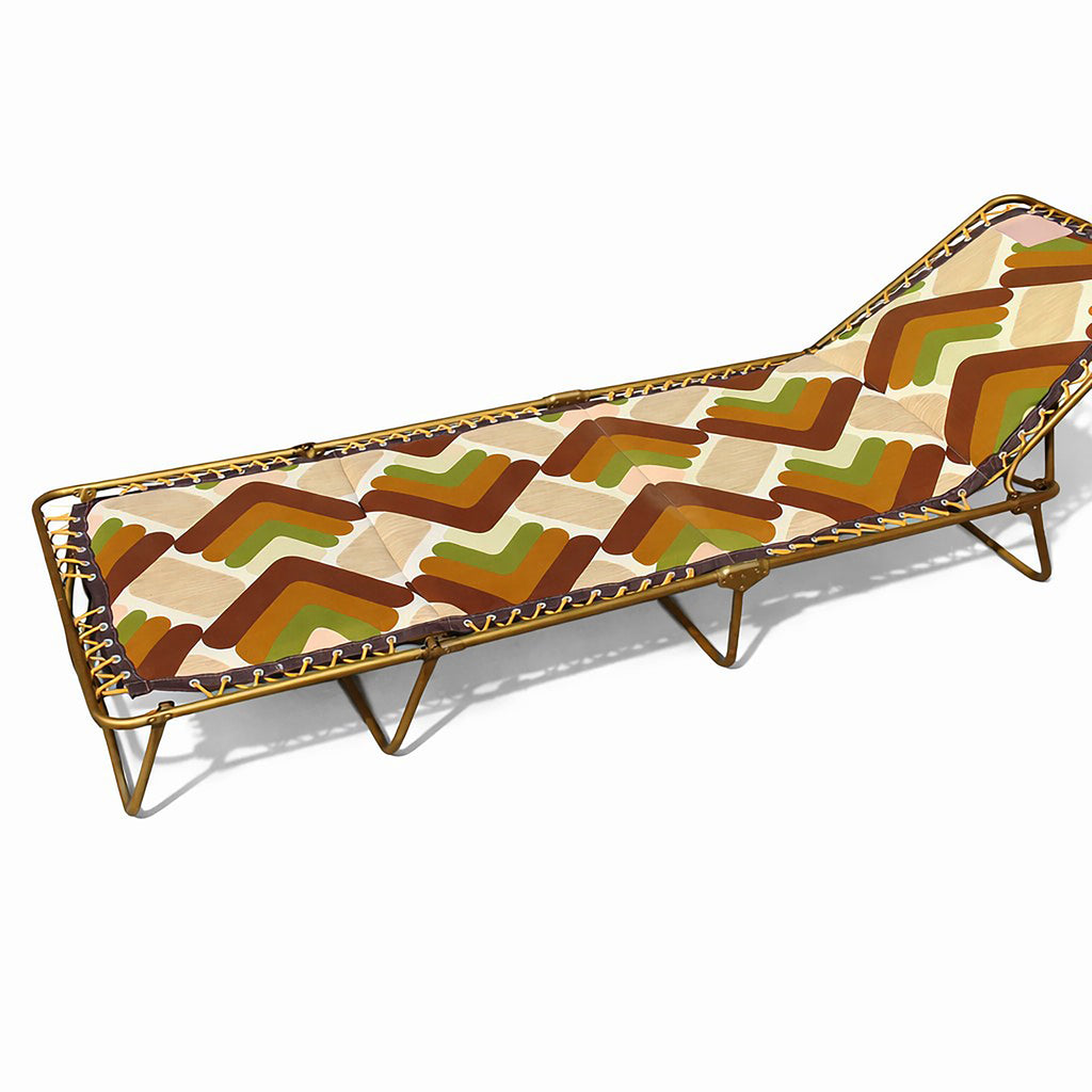 Authentique lit de camp pliant Lafuma, fabrication française, au design typique des années 1970.