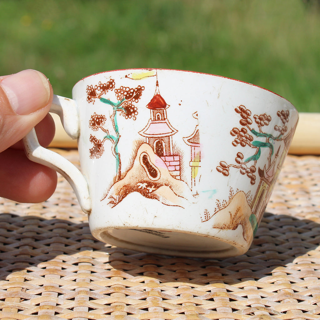 Ancienne tasse à café en faïence de Sarreguemines modèle Kyoto