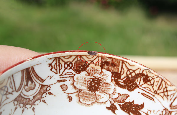 Cette tasse a un vécu de plus de 100 ans et elle n'est en aucun cas dans un état neuf. Il faut donc prendre en compte que malgré une sélection et une description rigoureuses afin de présenter un ensemble de qualité, elle peut comporter de minimes défauts causés par le temps qui passe en plus de ceux indiqués dans la description. Pour avoir un état irréprochable, je vous invite plutôt à vous tourner vers de la vaisselle neuve ou plus moderne.