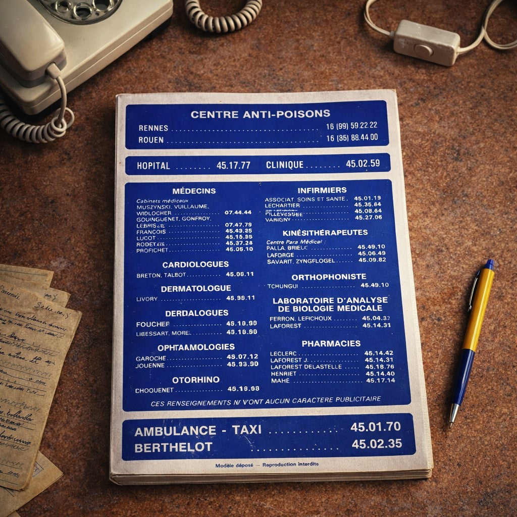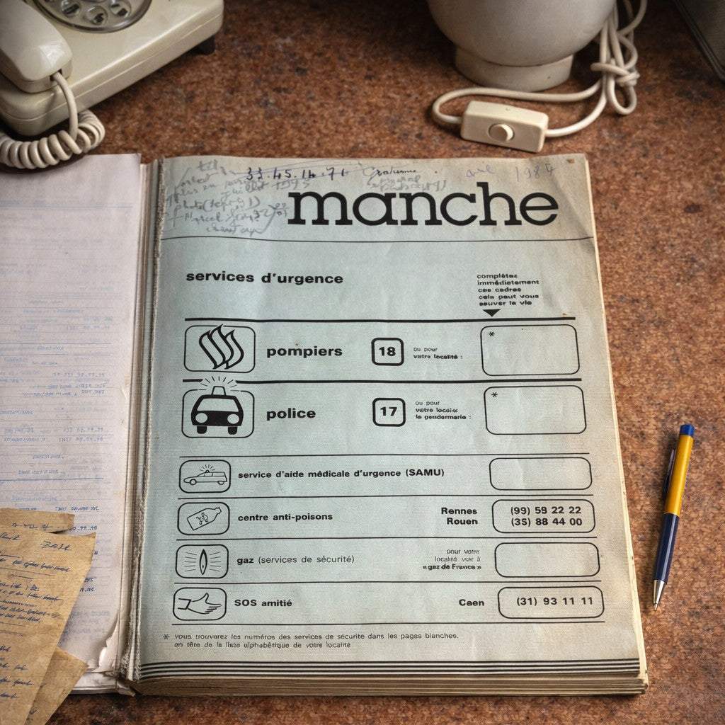 Authentique annuaire téléphonique de la Manche – édition 1984, dans son jus, avec sa patine d’époque et tout le charme du papier ancien. Un bel objet vintage, idéal pour les collectionneurs, les amateurs de documents rétro, les décorateurs, mais aussi une ressource précieuse pour les recherches généalogiques, permettant de retrouver anciens foyers, adresses et noms de famille dans la région au milieu des années 80.