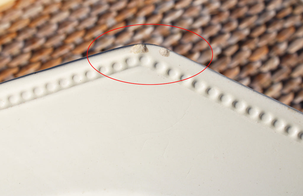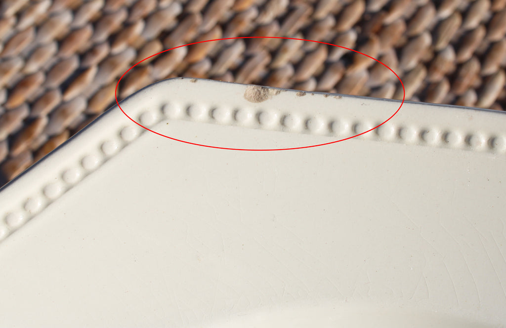 Présence de petits éclats et manques d’émail sur le bord, visibles sur les photos.