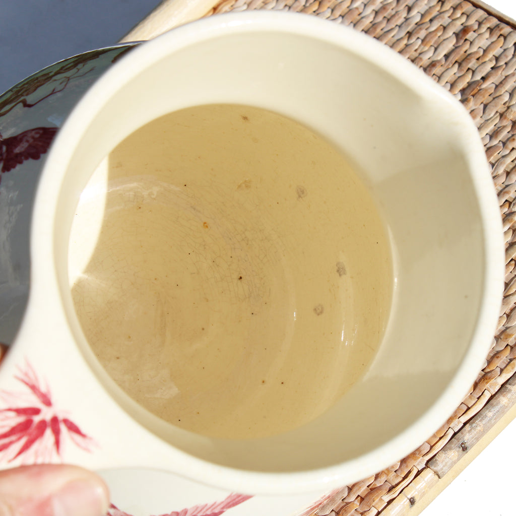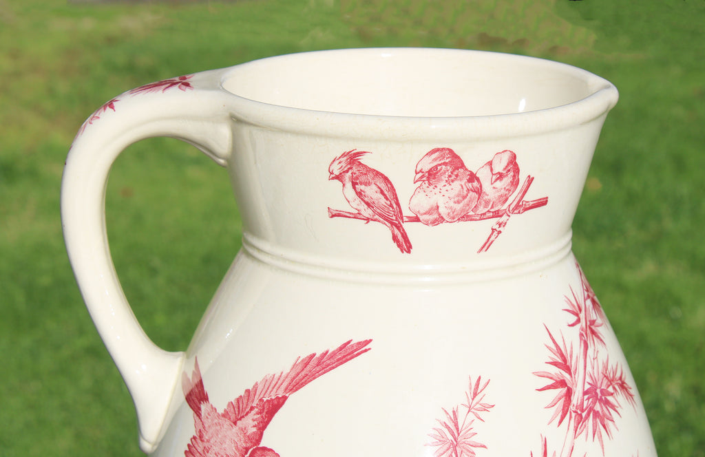 Broc de toilette en faïence de Longwy – Décor Oiseaux – Rouge sur fond crème – Fin XIXᵉ siècle