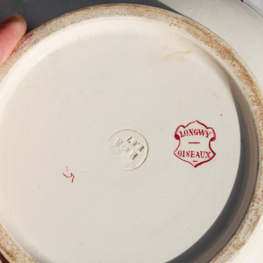 Le revers porte le cachet “Longwy – Oiseaux”, confirmant l’origine et le décor.